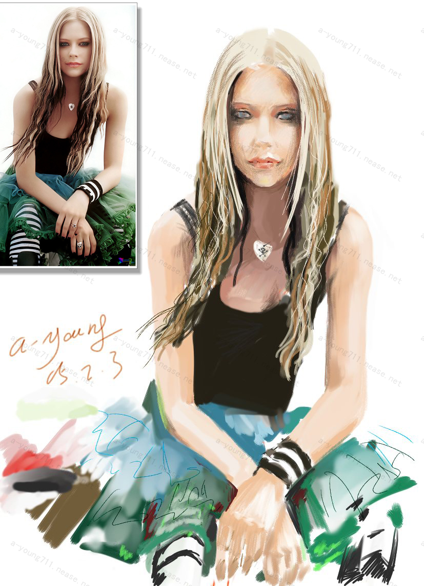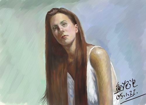 图片如下:  图片如下:  画完后怎么看都觉得比例线都没画错...可图就是不像... 在传图的那一刻...偶发现了....原来临摹的照片不是800*600的... 而偶画的却是以边框来确定宽度的.... 画得时候觉得好难校准..... 想问下可不可以先在照片上划好比例线来画...?会8会影响对目测的训练..? 再去重画....画好就来替换掉~ ------------------------------菜鸟分隔线------------------------------------------------------ 又画了张...画到最后一看整体...头小了...结果就只好做此权宜之计.... 图片如下:  ps:偶怎么开5D的页面好慢...?刷新了半个小时啊.....|||抓狂ing.....