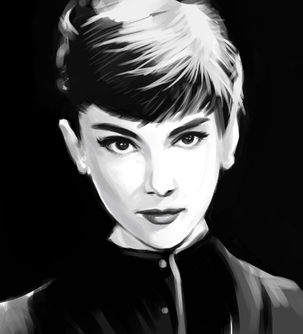 danube画的赫本还不错,就是正面的头像适当注意对称性,你画的脸和五官的关系有点歪。