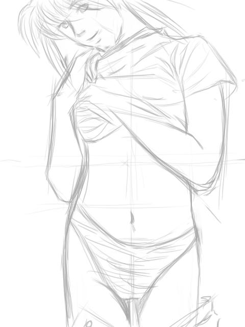 高度确定后宽度怎么确定... 虽然画了中心线..但还是画不准.... 这张画到后来发觉头又画大(宽)了....|| 然后右边的东西就画不下了...哎... 图片如下:  again~ 图片如下:  上色处于"文盲"等级.... ToT