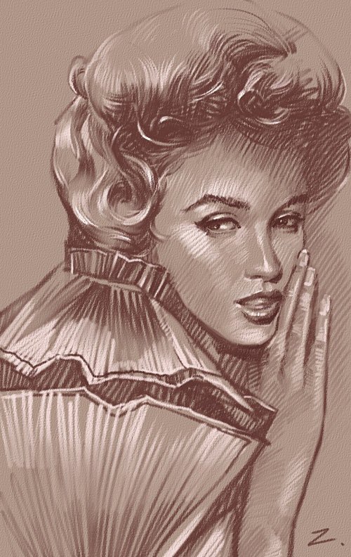 图片如下:  这是一张为painter教程特意绘制的范图,在有色底上作画的感觉不错。