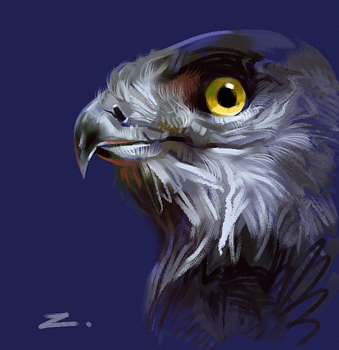 图片如下:  比较满意眼睛的刻画和羽毛质感的表现。