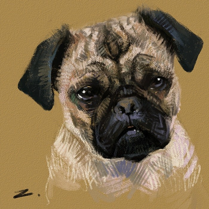 图片如下:  这张没有花多少时间,最多半个小时,不过效果挺不错的,至少狗狗的神态捕捉得还不错。