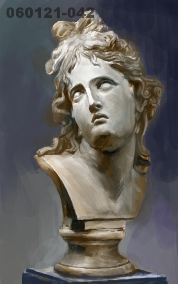 【No.042】 雕塑 形状、结构、大关系、擦笔的技法用线起稿时感觉还不错,为了不被细节吸引刻意细化,将笔刷调到1.5左右,只画大关系这