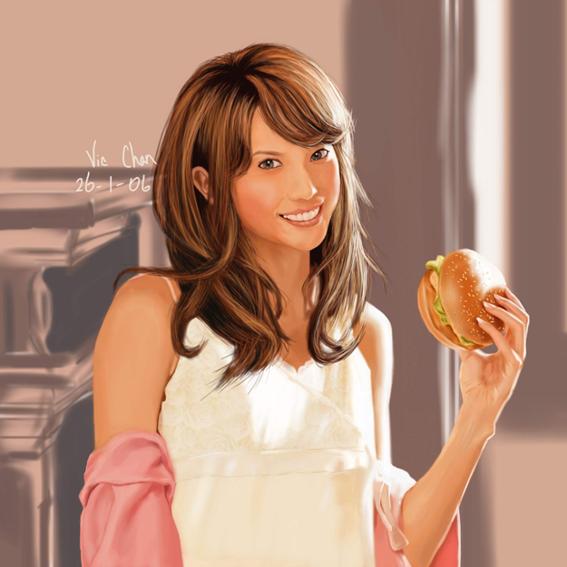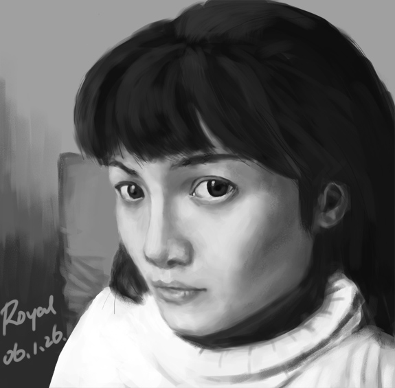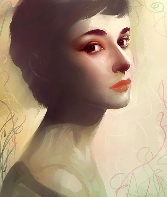 谢谢各位一直的鼓励和指导~  好久没来,今天终于闲下来了~ bingbangqishu: 欢迎加入sp  我觉得no1,2的整体感还不够,概括的部分和细化的部分似乎衔接得还不够好。我的个人意见~  vic1018:  no.1,2 两张照片写实的画风棒!~再接再厉! KKKKKKKKK: 我觉得no.3的面部色调似乎有点灰了  Royal2004: 006的面部色阶还可再分一分,对比度有点点不够, 主要是鼻子和嘴显得有点灰了。我的 个人意见~  matter: 你最近的几张都很棒!  你的笔触和造型挺有个性的  ~ 再接再厉! yaoyuan77: no10,11很漂亮的角色设计~  11衣领的刻画很有感觉! kissposer:  裸女整体不错~ 我觉得暗部和背光部分适当避免灰和黑会好些,人的肌肤会显得更透明些的。 taochanggong:之前的人体的练习很棒!  091我觉得在色彩方面还应该斟酌一下, 暗部的色彩似乎有点发黑了,我觉得一些在对比度上显得几乎纯黑的色块应该避免, 比如头发的阴影。不知道你是不是使用了burn笔刷属性, 我觉得解决的方法是,首先别用太多burn。然后把阴暗部位渲染成稍微带有色彩倾向的渐变,可以试试用color dodge, 或直接用喷枪上色,微微的抹几下,然后擦去多余部分。我个人意见了,有点罗嗦  。总之你再接再厉~!  kurtlzh: 吸血娃刻画得很水灵~ 我喜欢~  希望新一年常来  malatt:004线稿挺棒的~!  上色后的扇子没有画完整?是不舍得覆盖掉后面的人物细节么~? 呵呵  sea0401: 21很有感觉的笔触!  9Long:044 我觉得不是很脏,这样的刻画其实挺符合战场的感觉 不过一些琐碎笔触似乎还能再精简一下的,笔触一重叠往往容易显得乱和脏。 再接再厉!  lingy:  335,336的景物画的真棒!喜欢你的渲染手法~  再接再厉!333,334两张飞机我更喜欢333的刻画,我没开出太大问题来``呵呵,  倒是觉得334缺少了一些景深感,尤其刻画近处的透视细节似乎难度很大。 zhuzhu:707 的笔触和光感很棒!皮衣,面部,墙,地面的质感很过瘾~  再接再厉! 如果挑刺的话```  我觉得整体透视结构上也许有点关注不够,空间感显得平面化了。由于观察点在靠近地面的高度,人物以及背景体现更多的在高度上的透视变化也许视觉效果会好些。我的个人意见~ gecko:146 老人刻画得太强了~!复杂又简洁  体现了素描功底~  再接再厉! no.150 - Andrey Hepburn 好久没画感觉手生了,而且拿起笔感觉有点迷茫````涂这张赫本还是帮助找会了些感觉  天使般的赫本~ 嘿嘿  图片如下:  贴上两张原图~ 喜欢赫本的话大家也涂涂吧  图片如下:  图片如下: