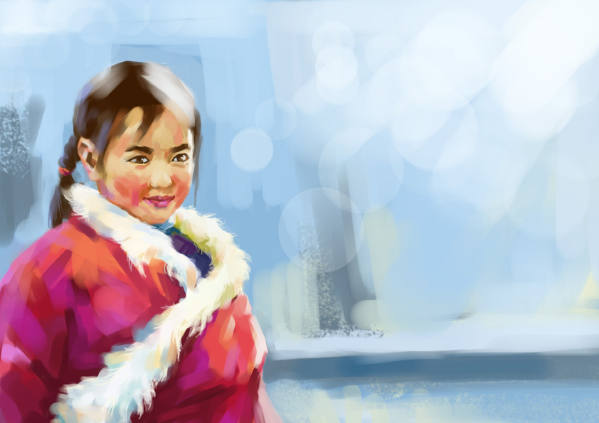 又来了```````````谢谢大家的回复~~~~~~~~ Jcsang:谢谢鼓励~~~~06的脸有点不自然 牛头人酋长:呵呵~~~~~看来你的耐心很好~ 黄小仙:呵呵~那小女孩画的我很郁闷.......33临的味道不错 小荷轩轩:03好! k歌之王:017够简洁~~~~~ vic1018:呵呵,artrage不好深入只有改PS了,10小时~~~~你也是耐心极好! PS的藏族小女孩 27 图片如下: