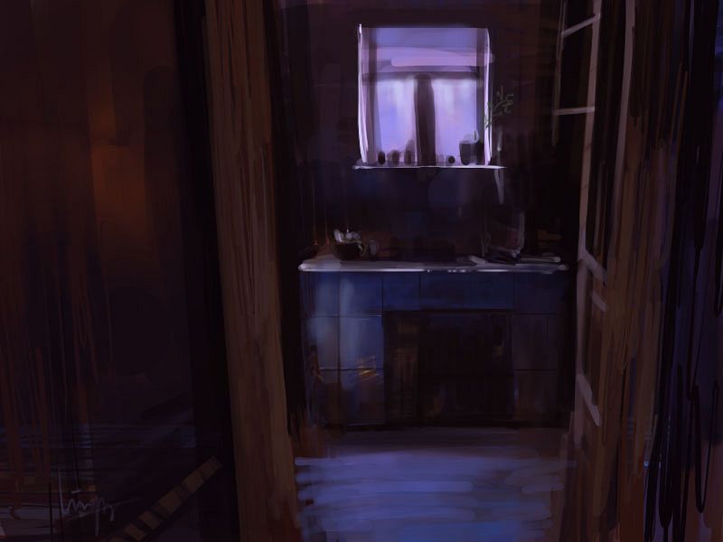 谢大家回复 bingbangqishu,15感觉不错,继续。 kurtlzh,很丰富的涂。 sea0401,27色块感觉很好。 xhxx007,4,5都很棒,喜欢4的风格。 bluezjj,新图还是很棒,洒脱。 vic1018,10小时……有耐心,而且也磨得很写实。 matsuo,临摹图越来越到位了,加油。 Jcsang,新图很不错,色彩很到位。 zhuzhu,我也很支持老大的感觉论和协调论哈。 Clain,谢翻译,其实那段话和hipper的涂让我想了好久,总觉得以前过于注意大师的技巧了。 [342] 一个电影场景 这几天家里人多,闹麻了,静不下心来涂…… 图片如下: