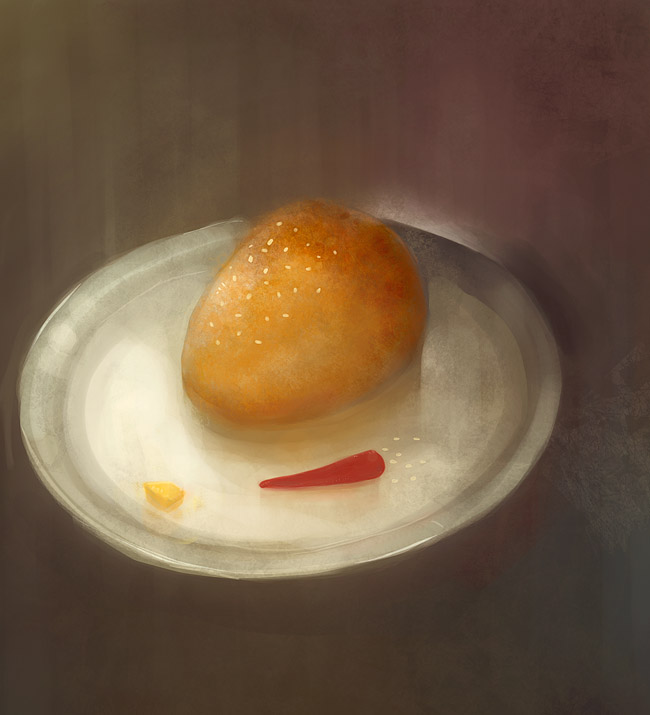 zhuzhu: 谢谢~  前天也是比较有空,所以多打点字,也利于清晰自己的思路。712的水彩的色彩感觉很棒很漂亮!用水彩表现这种酷图,风格很特别  ,再接再厉! sea0401: 谢谢~  我觉得no.26的问题是在色调有点不协调, no.27好很多~ 我觉得有时色彩并不是越多越好的,多了毕竟不好控制。画的时候一步一步,把要用的颜色先调出来比较稳妥些。一些个人意见。  再接再厉! Jcsang: 谢谢`no.6临的不错的! 手和脸的结构再多注意下就好了。 bingbangqishu: 多谢~  我觉得no.11在色调上有点缺少红色/橙色/紫红等暖色,如果光源是偏白色的,那么物体多少应该反映出它的本身颜色,如果简单地用大红色去和现在的肌肤混合,然后用白色提出高光,色调方面的平衡会好很多的,我是这么认为的吧  。15,16在结构方面都很清晰很棒了,我是觉得画面中的白色空隙应该注意处理掉的,不要太过图快了。我个人觉得这种留白会破坏整体色调和体积感的,使画面看上去显得单薄。都是我个人意见了,仅供参考~  再接再厉哈~ matsuo:谢谢  pt中我用的主要笔刷是pastel 和oil pastel,用的时候我一般把gain值调到100%,就是说没有纸纹效果,这样的笔触能够获得一种很细腻的混色效果。 另外还用了palette knife类笔刷辅助造型, airbrush类笔刷调整大的色调氛围. no.33 临摹不错~ 层次还能再分开点的。 再接再厉 xhxx007:谢谢,很童趣的图哦`  bluezjj:多谢~  我经常是耐性不够,以后会多注意的,谢提点~ 017很棒,有平面设计的味道  再接再厉! vic1018:谢谢~no.06的长涂效果不错的!  再接再厉! xhxx007: 05临摹得很棒, 色彩很有绘画的味道~ kurtlzh: 谢谢~过奖了!  色彩方面你能当我老师了`` 345的主题有点像spooge的一幅图~  整体色调浓郁啊!控制得刚好。这个得像你学习~ 我是经常弄过头,要不就灰,要不又太鲜艳```呵呵`  你继续~ 再接再厉! lingy: 谢谢~  想一想确实是那样,大师们赖以生存的是他们的绘画意识```技巧总是能被模仿和复制,而意识则独一无二。新图342很朦胧  ,是那种很压抑的文艺片么~呵呵` 再接再厉啦! no.155 主要刻画面包了  ```辣椒和干酪没画好,主要是没太多相关的绘画经验和视觉经验。大家看看感觉怎样?我个人觉得面包还不错的``呵呵 图片如下: