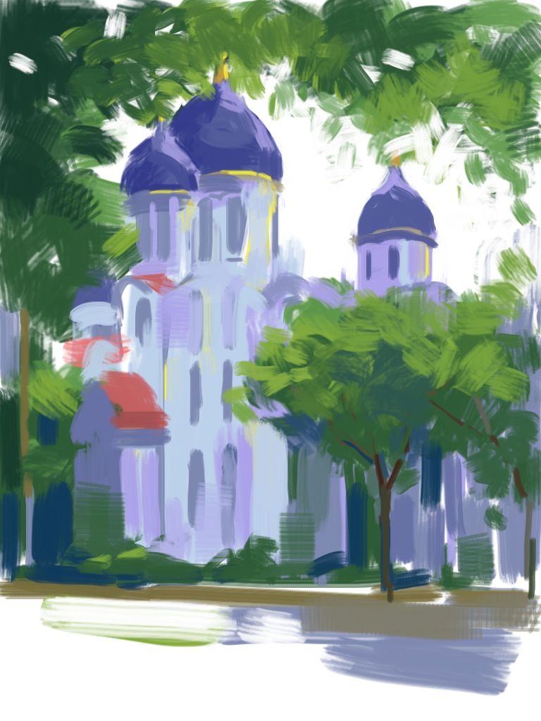 今天外面阳光明媚,来到了襄阳公园那边的东正教教堂,记得20年前来这边写生过,还在华山美校的时候。20年后故地重游,怀旧唏嘘了良久。站在街边画了半个小时不到,教堂边的街道很僻静,没有太多的打扰。
