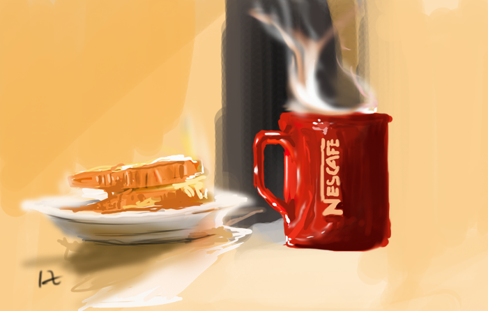 呃,那个,只要有咖啡和面包就行了,黑色的不用加上....