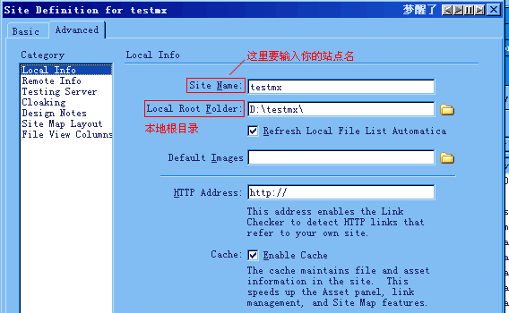这里不能不说一下DW MX的站点设置,因为要用到数据库和解析ASP代码,所以它的设置不像DW一样随便搞搞就行了。大体来说这里分了三部,即本地站点信息,远程信息,测试服务器。 图片如下:  这里要注意的是站点名和本地根目录的设置要正确。 图片如下:  这里要注意的是设置服务器访问类型,如果在本机上测试和制作的话最好选local/network,后面的远端文件夹就选本机在上面设置过的本地根目录就行了。 图片如下:  注意选服务器访问模式,服务器访问方式也选成和上面设置的一样。最不会注意也是最重要的是下面的URL前缀,如果这里没选正确的话就可能导至你无法访问服务器。它的设置方法是http://localhost/你的web共享目录名,或http://127.0.0.1/你的web共享目录名(127.0.0.1也可改成你的本机名) to:楼上的两位老兄 数据binding之前还要设置database,这样才能用。