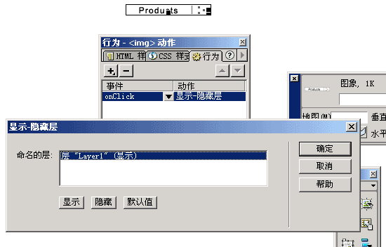 我想用behaviors做一个隐藏/显示层的效果。就是鼠标放上去,原本隐藏的层和层上面的文字就显示出来。我试了几次,可是浏览的时候并没有效果。层的属性被我设成了“hidden”。我的操作好象没有问题,怎么会这样呢?