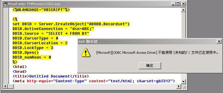 出现 asp脚本错 对话框 [microsoft] [odbc microsoft access驱动程序不能使用‘未知的’文件