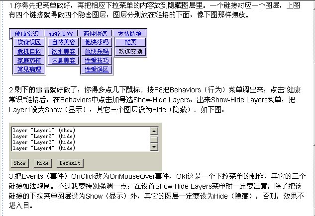 在上面的教程中,做出来的菜单下拉以后,如果鼠标不移到另一个菜单上就不会隐藏。