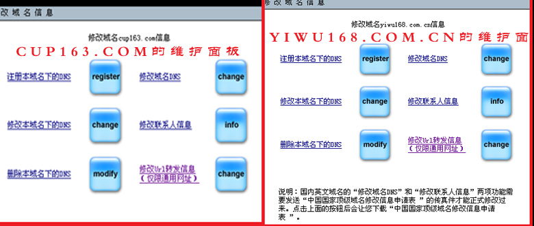 我有申请有两个域名,一个是cup163,com另一个是yiwu168,com.cn.我的空间挂在yiwu168.com.cn上,请问我该设置哪些其中的哪些面板哪些选项,该如何设置,怎样上传(上传的文件或文件夹怎么取名)才能使这两个域名都起作用,多谢!~~ 图片如下:  图片如下: