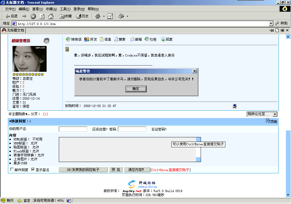 编辑历史:[这消息被测试编辑过(编辑时间2002-12-20 21:37:07)] [这消息被测试编辑过(编辑时间2002-12-20 23:09:11)]