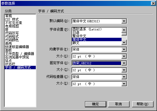 查看参数设置里的Font/Encoding中的代码字体设置是不是被自动选择了其它字体。你说有个框。比如文鼎习字体. 改为宋体即可.