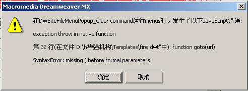 我的Macromedia Dreamweaver MX不知道怎么搞得。 有时会路出一个窗口: 图片如下:  我单击后就自动关闭了。请问是怎么回事?我已重装多次。