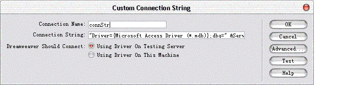 我不想用DSN连接,如图的连接我应该怎么写阿?[upload=bmp]uploadFiles/2003-01/2610491930515.bmp[/upload]