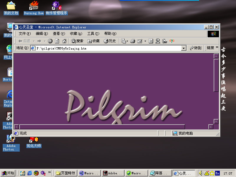 记住其中的这段代码挺重要的: 如果没有这段代码,那么这个索引页就不会自己关闭,如果自己不关闭,就会有些小的问题,呵呵 var w=640,h=420 上面代码里的这句话大家应该都知道,是定义无框窗口的大小的 mm=setTimeout("go()",500); 这句话是定义运行速度的,大家可以通过更改数值来改变速度 var popup=window.open('winmove.htm','','fullscreen=1'); 这句话就是无框窗口中引用的页面,大家应该都明白吧? 讲到这里,滑入的效果就OK了,现在讲滑出,开始我以为在关闭窗口的叉叉图片里定义javas cript:close()就可以关闭滑出了,可是发现只能关闭,但是不是滑出关闭,后来才知道这需要一个s cript才行 代码如下,把这个代码加入到引用页里,也就是这个示例的winmove.htm这里页里: var w=640,h=420; var xstep=0,targetx=(screen.width-w)/2,targety=(screen.height-h)/2; function exit() { if(xstep+targetx{xstep=0.1+xstep*2; window.moveTo(targetx+xstep,targety);} else {clearTimeout(mo); window.close();} mo=setTimeout("exit()",10); }