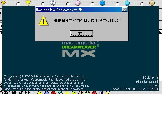 我以前安装有DreamWeaver Mx 英文版和DreamWeaver 4中文版,我再装DreamWeaver MX 简体中文版,安装完后运行出现警告“未找到任何文档类型。应用程序即将退出”。我把其它版本的Dreamweaver删了仍然这样。