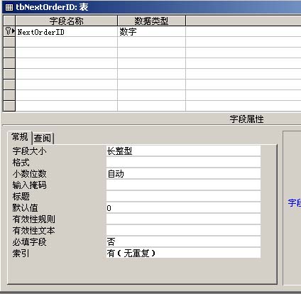 我在ACCESS的一个数据表中设置了一个数据叫NextOrderID:数字类型、是主索引,我该怎样设置其他选项才能使用户每次调用了表中的NextOrderID号后,ACCESS自动生成下一行数据,并且等于前一行数据的值加一?谢谢大家帮助!