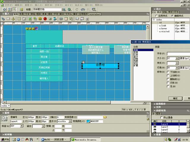 另外我又试了试我自己的网页(就是我贴出图的那个),那个层里的文字当只设定CSS中的td值时,css无效果,而如果给那个层中字体加上超链接然后设置好a:link,那么CSS设置就会起作用