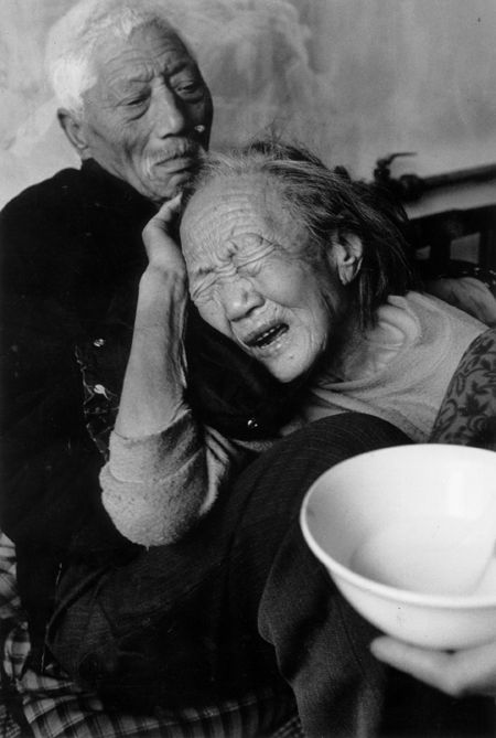 是他们的儿子拍的吧?一个摄影家。我看过一期电视采访,那个摄影家拍了一系列一辈子生活在农村的父母的照片,讲到了他们平淡、恩爱的生活,很感人。不知道这些照片是不是就是他的作品,看起来好象是的。不过以《老伴》为题材的摄影作品很多。