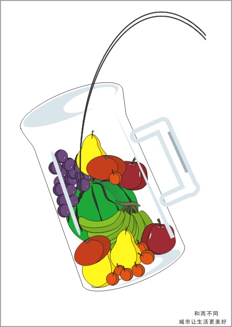 这个杯/瓶,能放下个西瓜,估计很大很大。 把手不协调。除了香蕉和西瓜,其他水果都像切开一半。
