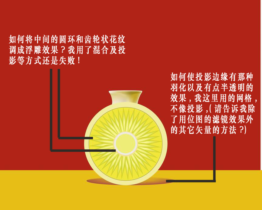 做浮雕,可以用做好的图形再复制一个,放上最上方,和原来的图形错开一距离,左错一下,上错一下,调到你满意的位置后,在两个图形中做调和,搞定。看你做的这个图,可以把复制的图形稍稍缩小一点再调和。