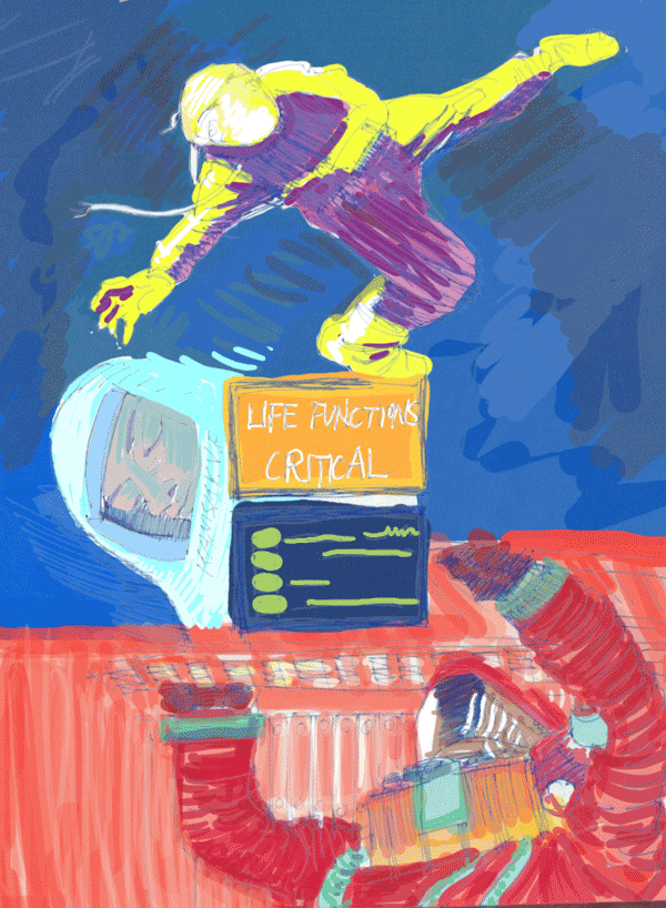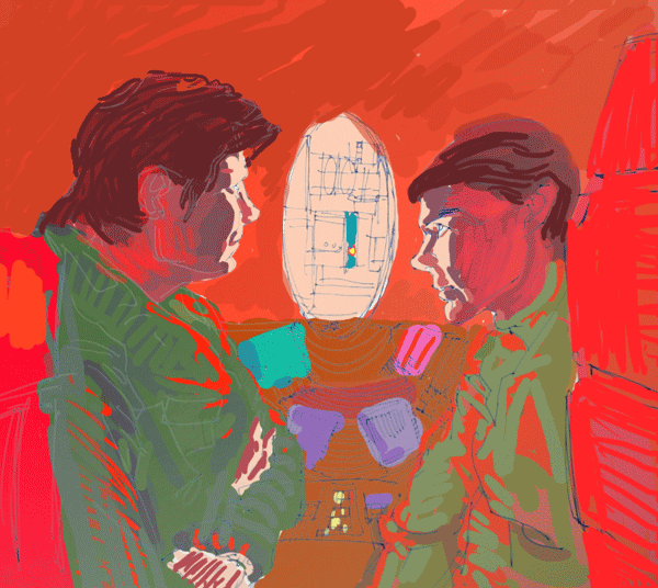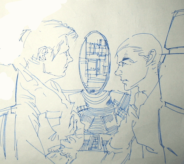3。在赫尔看到大卫画的其他船员的素描之后,报告大卫船舱顶的与地球联络的信息交互机的主板已经老化,需要在72小时之内修理。但赫尔拆下交互机后与副手金波却怎么也查不出交互机的毛病。于是,大卫对从没有出过错误的9000型电脑产生了怀疑。