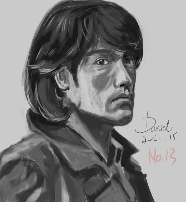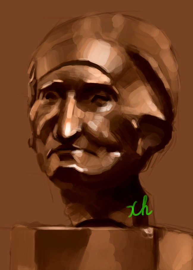 有时候随意的乱涂是一种很好的热身~  遇到坎的朋友可以试试, 暂时放下那些严格定义的东西,用一些原生态的东西来表达感觉,也许能找回最初的状态  像这样,单用painter的 oils-detail 转圈转出来的老人头其实也挺有意思的~ 我的个人感觉罢  ~ 画的时候其它什么都没想, 整个过程就是在转圆圈。 用许多圆圈依靠在一起来堆砌出大的轮廓,然后用许多小的连贯的圆圈来填充阴影 ```大概画了20~30分钟左右 no.135 图片如下: