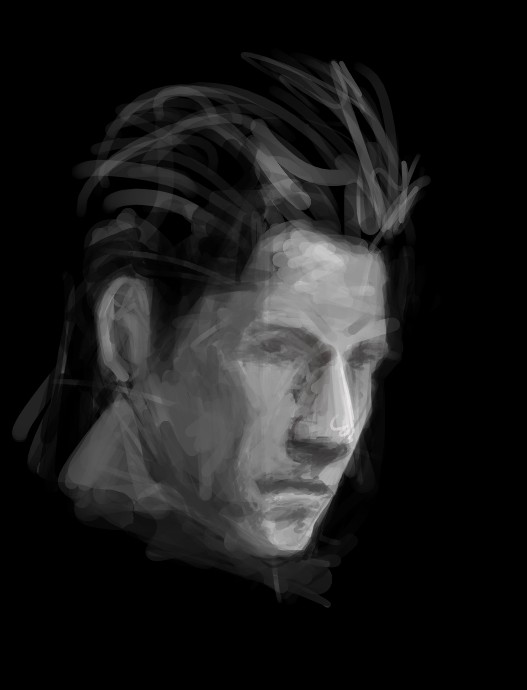 脸部画得不错,就是头发部分没有体现出整体的球体感,两边转过去的感觉还不够,可能是过于注意局部发丝细节的刻画了。同时,脸部轮廓线不要处理得那么单薄,应该是有厚度的,不要画成剪纸,在局部适当注意一下微妙的虚实变化。