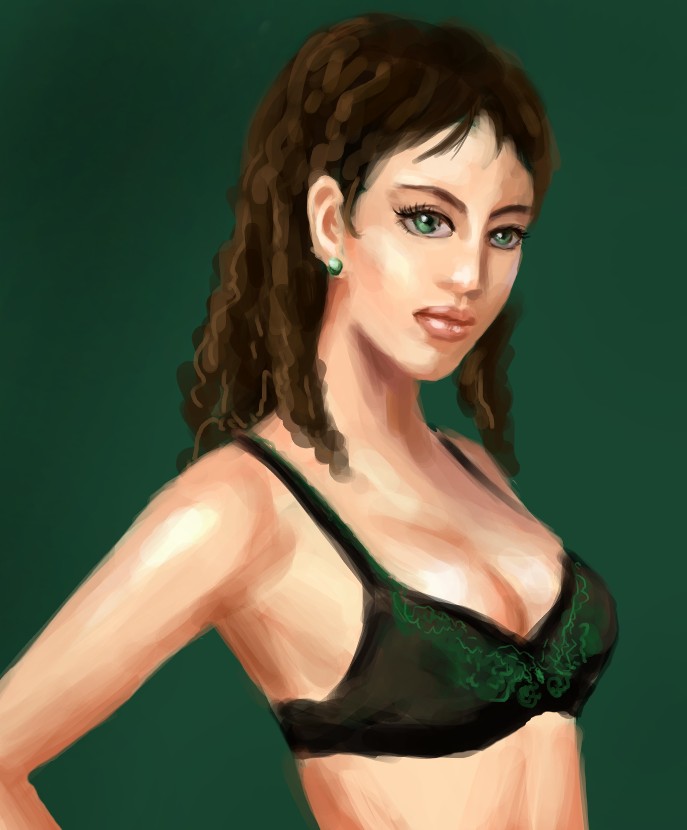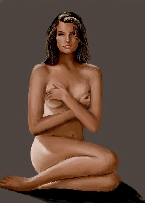 猪老大:谢谢老大指点。010的鼻子我老是画不好,很是郁闷。老大真厉害, 一天更新了3张图,简直让人敬佩啊!859的眼睛好象有点大 复原大师:新作又来了啊。。。。。还是那么棒! 读行天下:谢谢点评!057的感觉很清新啊。058是飞影?如果头发也用衣服的那种笔触的话,估计效果会更好点。 quanquan83:新图很棒!不过感觉整个画面都一片红,有点看不清主次~~嘿嘿 今天开始练习人体了,画满10张后又继续画人头。感觉笔触碎了点。 生平第一张人体! [NO.011] 图片如下: