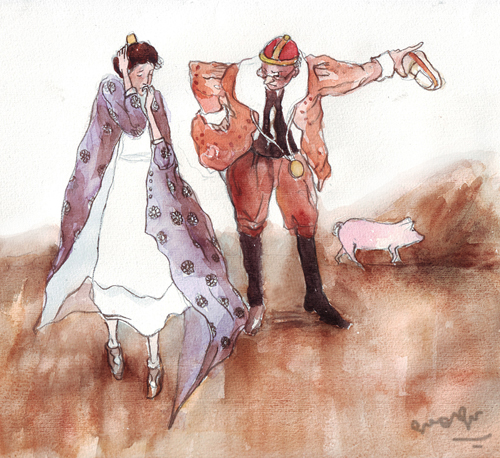 这一个多月又不能上网了,哎。。实习,毕业。。 大家还是这么热情,速写版块的活动我又参加不了了! 以后工作了,应该会有很多时间画画了吧!嗯。加油了,各位!年后再见! sea0401:谢谢。画的MM不错,头像也很棒! labixc:053的感觉不错。。 happyzz:嗯对,找准自己的方法。210和211感觉还不错。 zuzu:最近的MM眼睛好迷人!喜欢! rongqiclimb:椅上妹妹,色彩似乎有些单薄了。。加油! basketcase:161的效果不错! yiyixiaomei211:练习很认真啊!轮廓练习不错! taochanggong:纳多画得蛮整体的,结构有些小毛病。呵呵 CJY87:现在用这种笔触越来越熟了啊。不错,有时可以稍微的变动一下会更好。 临我喜欢的一张插画,是 童话《牧猪人》里的一张插图 250图片如下: